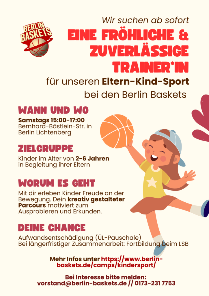 👣 Wir führen dich gerne Schritt für Schritt an die Aufgabe heran. Vorkenntnisse sind hilfreich, aber nicht zwingend erforderlich. 📩 Schreib uns einfach: vorstand@berlin-baskets.de